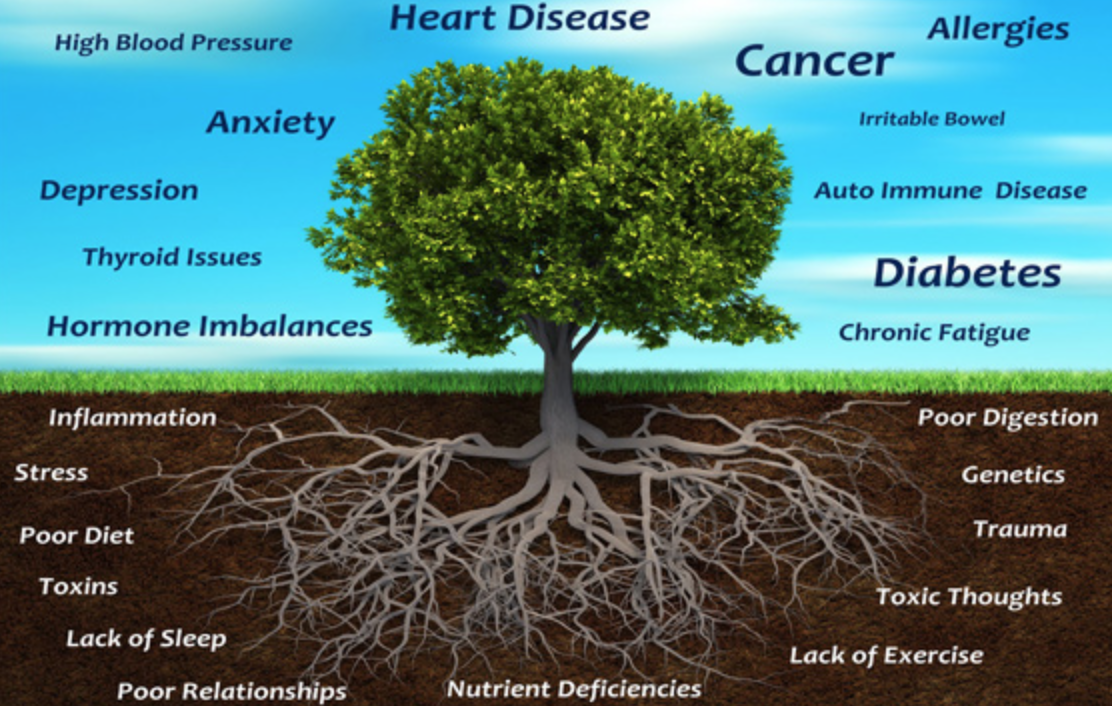 Functional & Integrative Medicine is founded on the principles of promoting wellness through a focus on the fundamental underlying factors that influence each individual’s experiences surrounding health and illness. Disease is a physical manifestation [symptoms] that results from a disruption of normal function in an attempt to maintain order within the body [homeostasis]. It results from core imbalances and can have many Root Causes. Only through addressing these can you ever truly hope to correct the imbalances. Medications treat the symptoms but they do not address the cause and, therefore, cannot cure the disease.