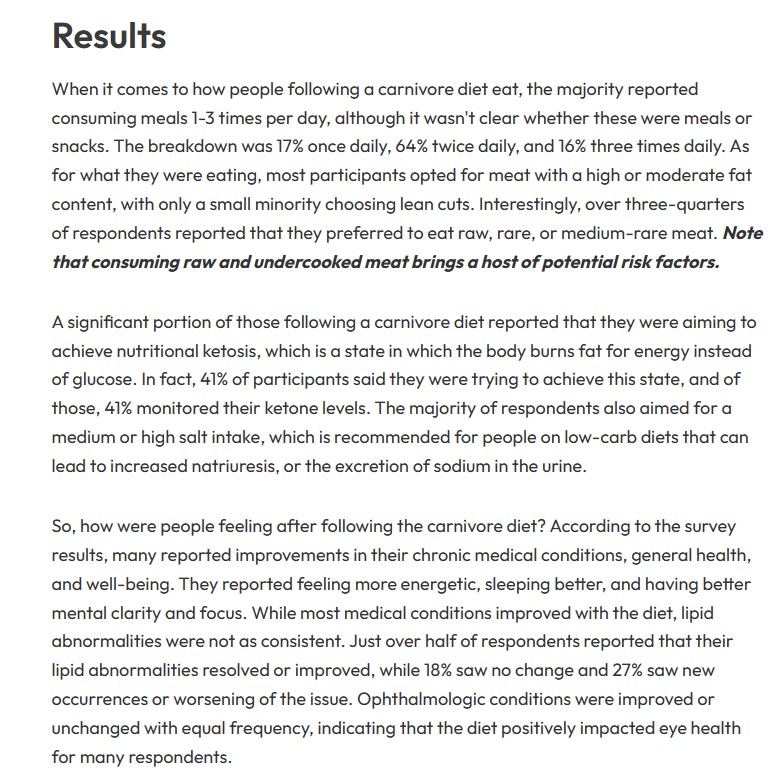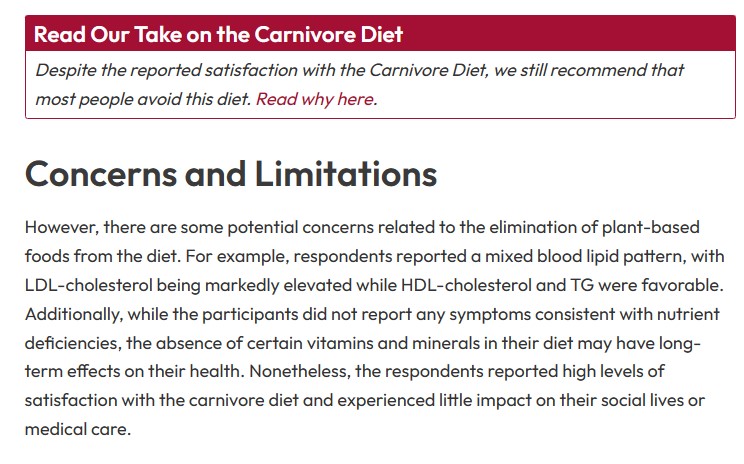 Ah, they may have nutrient deficiencies, even though they have no symptoms to suggest nutrient deficiencies, and the fact that most of their symptoms improved dramatically while eating this way is merely a masking of the real underlying problem of occult nutrient deficiencies. It all becomes clear now. A plant-based is healthy and provides the body with everything it needs, but a meat-based diet offers only nutrient deficiencies that will lead to long-term effects on their health. This is what we refer to as speculating — we do not like the results and were hoping to prove this dietary approach is dangerous, but it did not play out that way, so now we are going to make up statements to help support our beliefs.